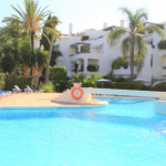 Elegant three bedroom first floor south facing apartment with garden views in Imara, Sierra Blanca on the Golden Mile of Marbellas, a short drive to the sandy beach, the best restaurants, stores and other amenities. This modern complex has three swimming pools, sauna and immaculate gardens with 24 hour security service. The apartment has a spacious entrance hall leading to the living-dining room along with a kitchen and access to the covered terrace and garden; the master suite and two guest suites. Other features include a fireplace, air conditioning, central heating; underfloor heating in bathrooms; fitted closets, marble floors and subway parking space.