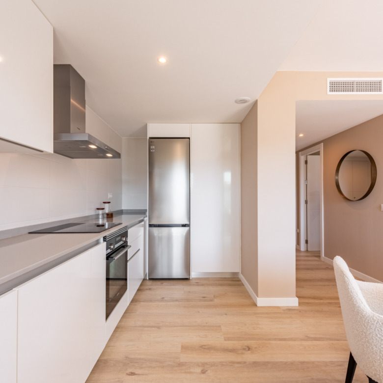 Featuring an expansive open-plan kitchen with all new appliances under warranty, as well as an inviting living area with direct access to a private terrace. Residents benefit from air conditioning, blinds, fibre optic internet, security and peace of mind are paramount, with an armoured door, video entrance, surveillance cameras, and a gated community with lift access. Daily cleaning of communal areas and a concierge service six days a week further elevate the standard of living.