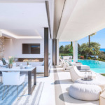 This fantastic totally new and brand new Villa is located in the exclusive area of Valle del Golf, Nueva Andalucía, very close to all services, international schools, luxury shops, restaurants, golf courses, and the luxurious commercial area of Puerto Banús and of its fantastic beach. This Villa, of unique design, is built on a plot of 1,420 m² and the built meters have been used in a very intelligent way, as well as its distribution and orientation totally to the south, with fantastic views and taking advantage of the light and the sun. It was built and completed in 2021, divided into two wings and three levels and with the highest standards of quality, decoration and equipment in terms of security measures, air conditioning, comfort and home automation. The entrance floor features a unique entrance hall, a guest toilet, an impressive open-plan living room, a dining area and a state-of-the-art fully equipped kitchen with integrated Miele appliances, an island and a breakfast area. On this floor there are also 2 spacious and bright rooms with private bathrooms en suite. On the upper floor we have another 2 bedrooms, one of them an elegant master suite with dressing room and living room. The basement level has plenty of space for staff accommodation with kitchen and bathroom, a guest suite with private bathroom, a TV and cinema room with bar area, storage, laundry and engine rooms, Turkish bath and a garage. for 3 -4 cars.