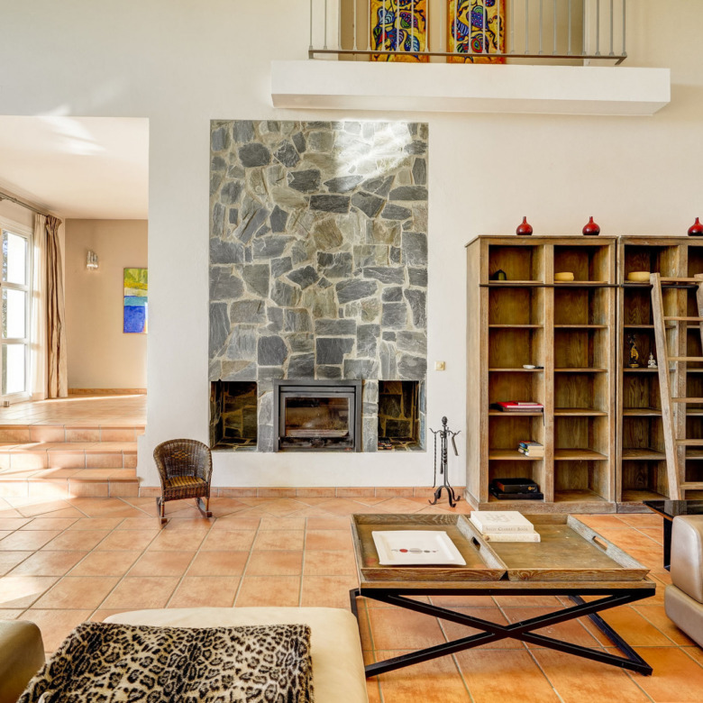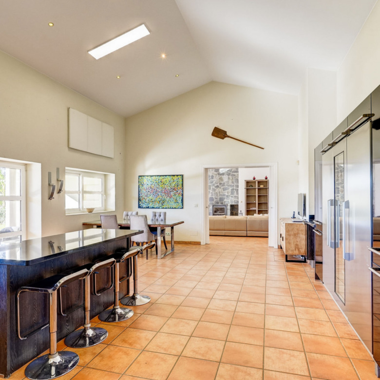 The villa is uniquely equipped with an extensive cave, perfect for entertaining guests with a bodega, dance floor, and bar.
