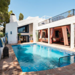 This stunning 7-bedroom villa is situated in Las Brisas, Nueva Andalucía and is within walking distance to local shops, restaurants, golf and just a short drive to International schools, Marbella old town and Puerto Banús. The property is set on a large plot of 1,245 m2 is available in a stunning condition having been recently refurbished in the summer of 2018 to a luxurious standard with the best quality and finishes. The property has 7 magnificent bedrooms en suite including a guest tower – ideal for staff quarters and another small bedroom and bathroom with access from the exterior. As you enter the property of 441 m2 through the main entrance you will find a spacious living room with an electric fireplace, a modern luxurious kitchen with high quality fittings and an open-plan dining area which all lead out onto an elevated terrace with exceptional views of “La Concha” mountain. The terrace has the added benefit of a roof which can be opened or closed. On this same level you will also find a guest WC and a laundry room. To the side of this property you will find an annexe with a living area or study and a bedroom en suite upstairs in the tower. On the lower level there are 5 bedrooms en suite with luxurious finishes such as Persian blinds, another small bedroom and bathroom with access from the exterior and a gymnasium. Beside the pool there is a terrace with a roof (which also opens and closes), a barbecue with a bar equipped with fridge, dishwasher and sink and various lounge and dining areas. There is an outdoor jacuzzi and heated pool (with cover). Some additional features include double glazed window (aluminium frames), mosquito nets, independent air-conditioning units and underfloor heating throughout (heated by water pipes which are heated by gas). The water for the house is heated by gas with electricity backup. As well as this there is also a garage for 2 or more cars and a parking port for 2 cars, store-room and perimeter alarm. If you are interested in this property or any others in this area contact us today for a viewing.