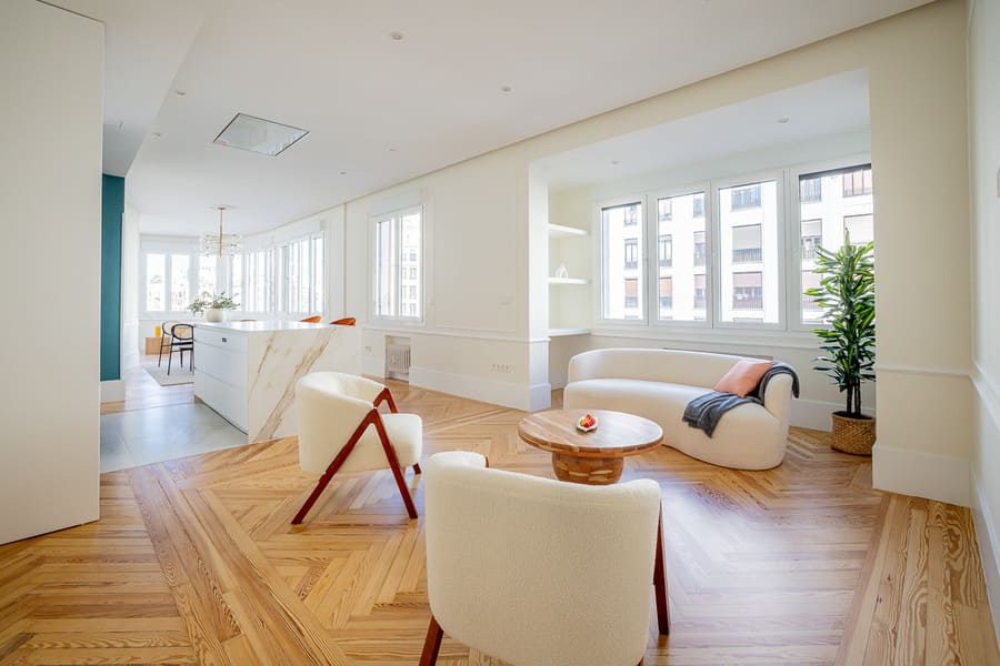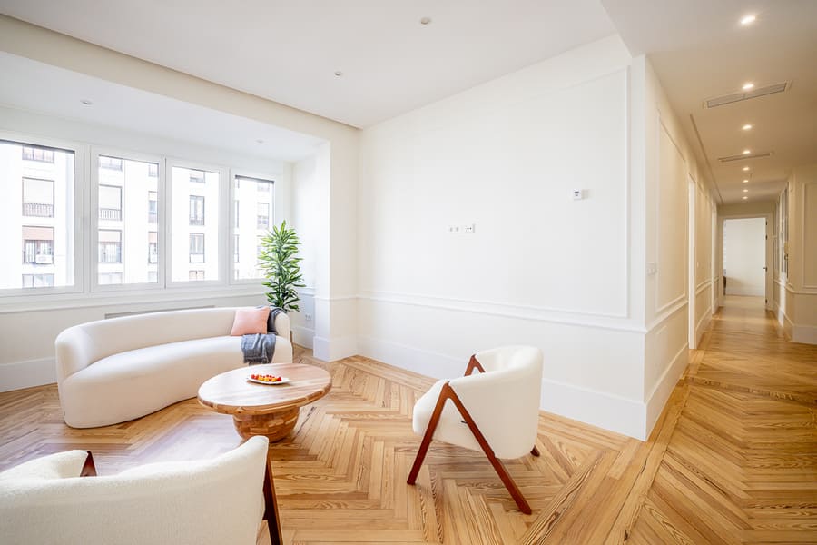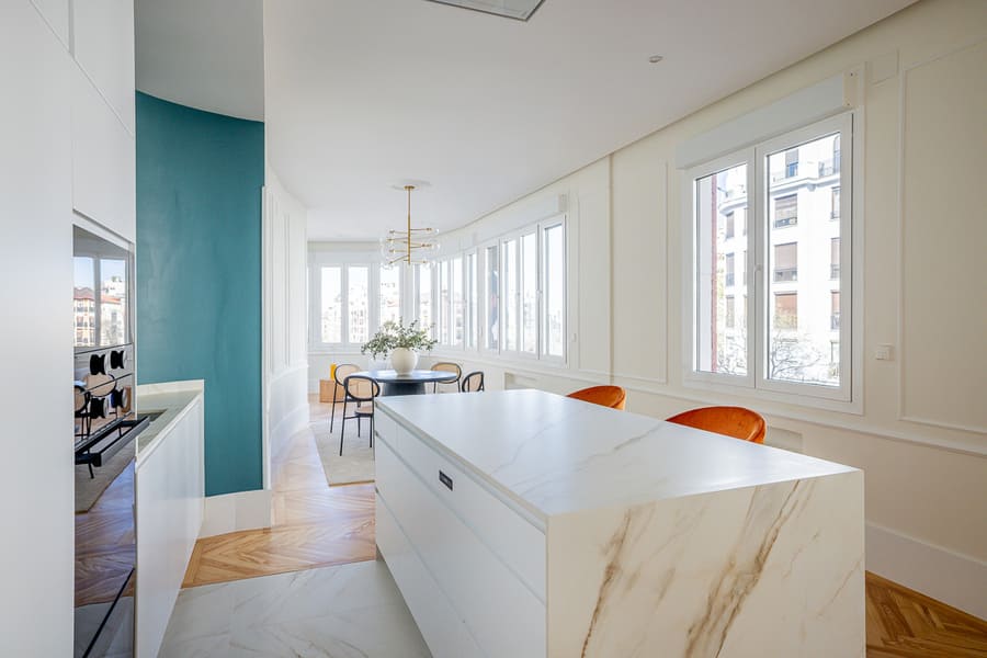 Espectacular piso con las mejores vistas del Barrio de Salamanca. Orientación oeste. 25 METROS LINEALES DE VENTANAS EN ESQUINA, ÚNICO. Reformado a estrenar con las mejores calidades del mercado. 3 dormitorios en suite con vestidores incorporados.