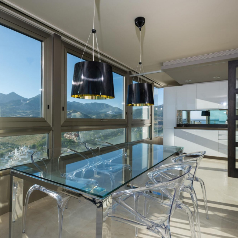 Este apartamento extraordinario encarna el refinamiento contemporáneo y la elegancia mediterránea. Los generosos espacios se desarrollan en torno a un espectacular salón bañado de luz natural, gracias a amplios ventanales que se abren a vistas panorámicas de 360°: el mar, los greens de golf circundantes y la majestuosidad de las montañas andaluzas.