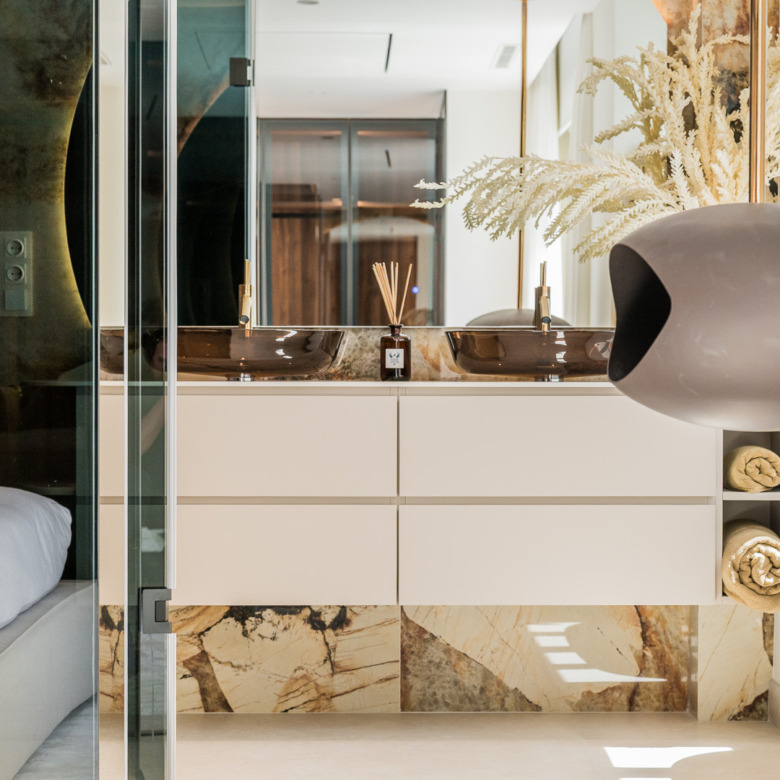 Este elegante apartamento de 3 dormitorios y 2 baños combina a la perfección un diseño de alta gama con una funcionalidad inteligente. Adéntrese en un espacio diáfano con un elegante sistema de sonido B&O, una elegante chimenea eléctrica y un discreto televisor invisible en el techo, perfecto para tardes relajadas o para recibir invitados con estilo.