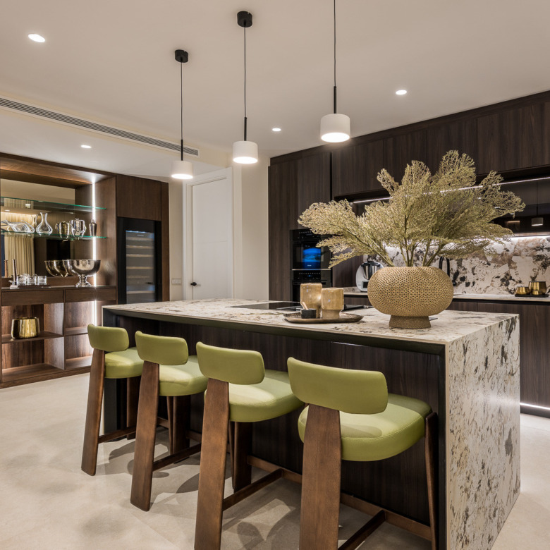 La moderna cocina es el sueño de cualquier chef, totalmente equipada con lavavajillas doble, Thermomix, vinoteca y barra americana, mientras que los elegantes acabados realzan cada detalle. Relájese en los baños estilo spa, uno de los cuales cuenta con una bañera independiente y una moderna chimenea de bioetanol, que aporta calidez y ambiente.