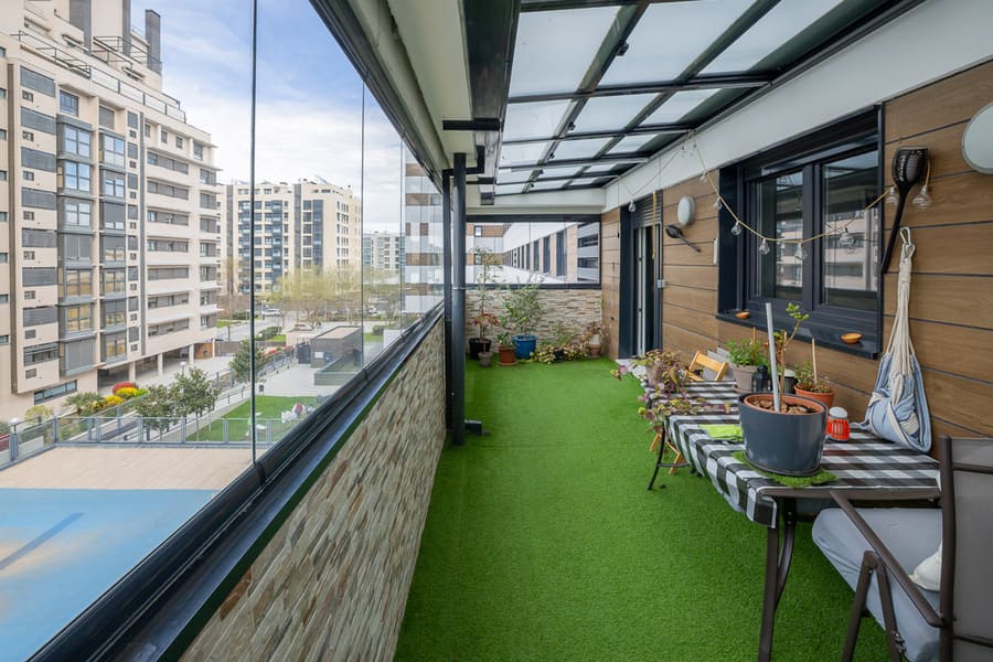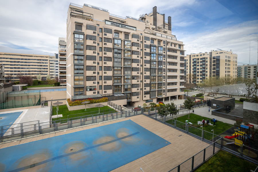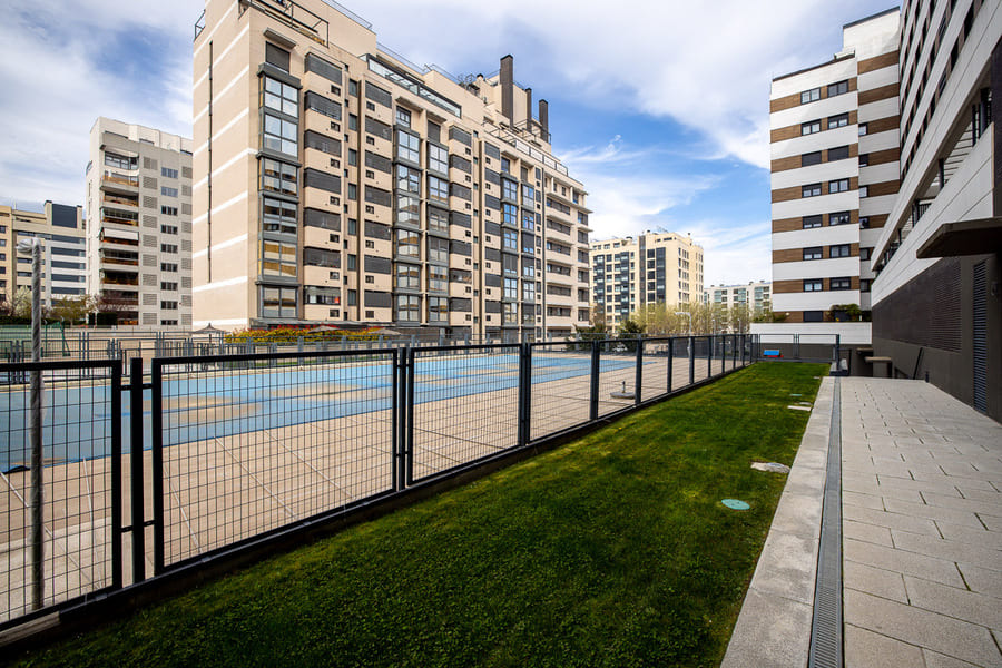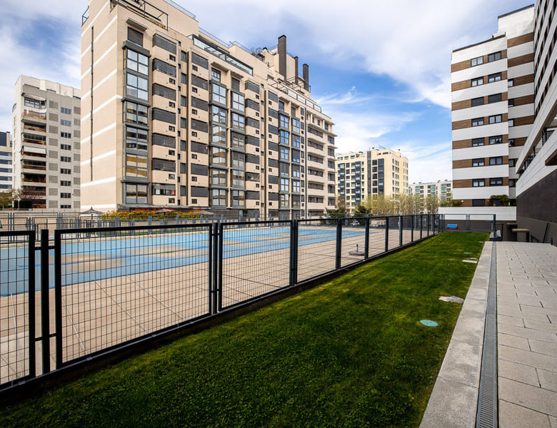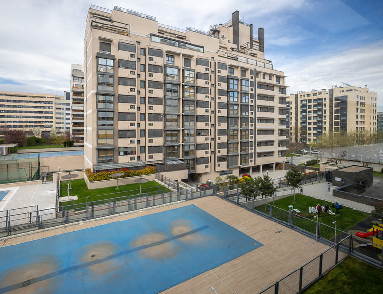 Vivienda de 3 dormitorios y 2 baños en urbanización privada de muy buenas calidades en Valdebebas, con 2 plazas de garaje, trastero y dos terrazas. Urbanización con conserjería, control de accesos, circuito de cámaras de seguridad, piscina comunitaria de cloración salina, pista de pádel, gimnasio, zona infantil y zonas ajardinadas. La vivienda cuenta con carpintería exterior de PVC con doble acristalamiento tipo Climalit y vidrio bajo emisivo, suelo radiante-refrescante, puerta blindada, armarios empotrados, ventilación mecánica individual y cocina amueblada con encimera de Silestone. Como extras de esta vivienda destacan las persianas automáticas, cortinas de cristal con apertura, toldo automático y cerradura invisible. La propiedad retirará frigorífico, lavadora y secadora.