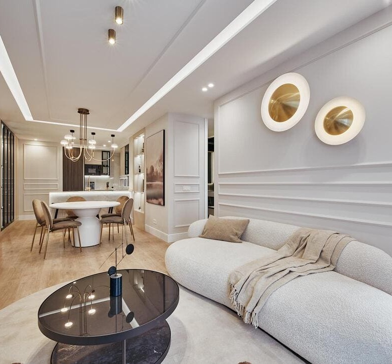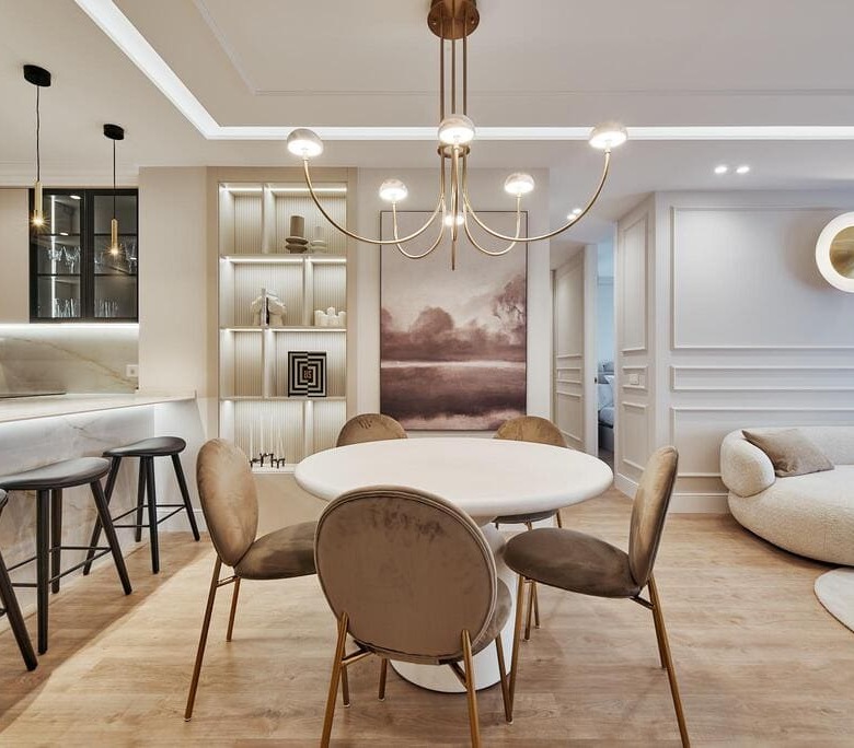 Un salón-comedor donde se prolonga hacia una terraza que aporta amplitud y conexión con el exterior, creando un espacio equilibrado y confortable.