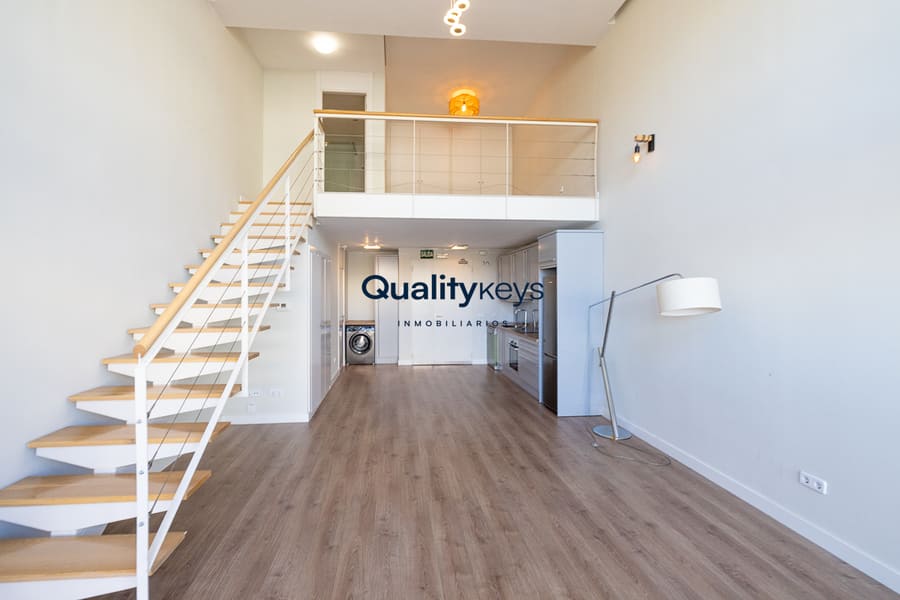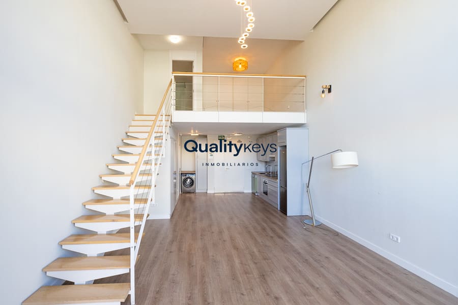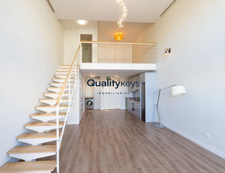 QUALITY KEYS INMOBILIARIOS MADRID-VALDEBEBAS, comercializa este magnífico LOFT DÚPLEX ubicado en segunda planta con orientación oeste. En la planta baja nos encontramos con un amplio espacio diáfano con armario empotrado de gran capacidad y cocina americana totalmente equipada con electrodomésticos de alta gama y aseo de cortesía y terraza.