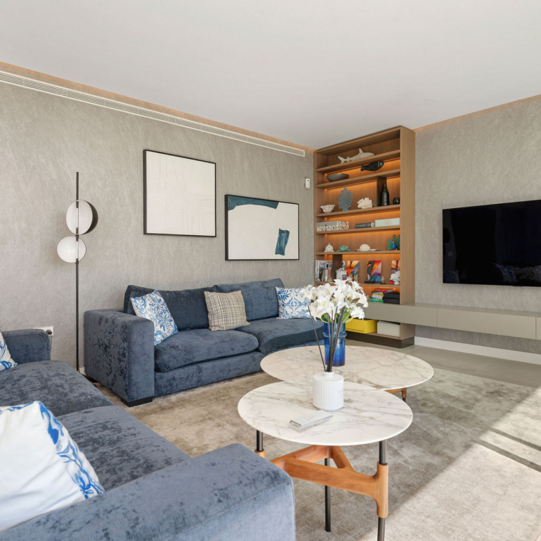 En el nivel del jardín, cuatro amplios dormitorios se abren directamente a la piscina y jardines ajardinados, creando un retiro privado para la familia y los huéspedes. Elegantes baños con duchas a ras de suelo y acabados refinados aumentan la sensación de confort y estilo, mientras que la conexión a la terraza junto a la piscina hace que este piso sea ideal para una vida relajada, tipo resort.