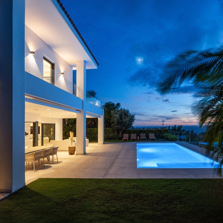 Exclusiva villa contemporánea en venta en Artola, una de las zonas más tranquilas y prestigiosas de Marbella, a pocos minutos de las mejores playas y campos de golf de la Costa del Sol.