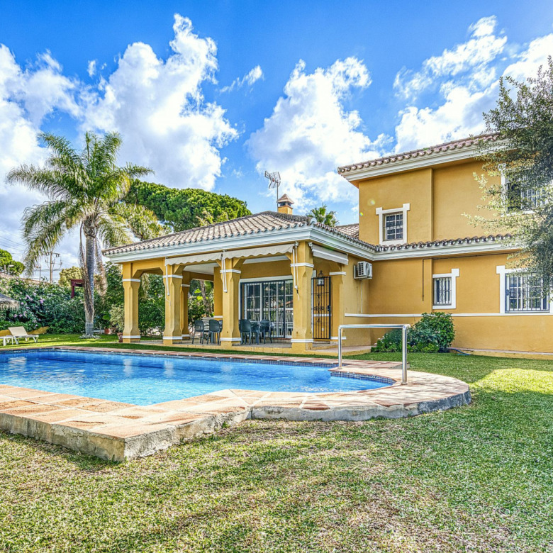 A tan solo 900 metros de la playa y junto al prestigioso English International College, se encuentra esta impresionante villa independiente que destaca por su privacidad, amplitud y un entorno ideal para la vida familiar. Rodeada de naturaleza y situada cerca de todos los servicios, es una propiedad que combina a la perfección el encanto mediterráneo con el confort moderno.