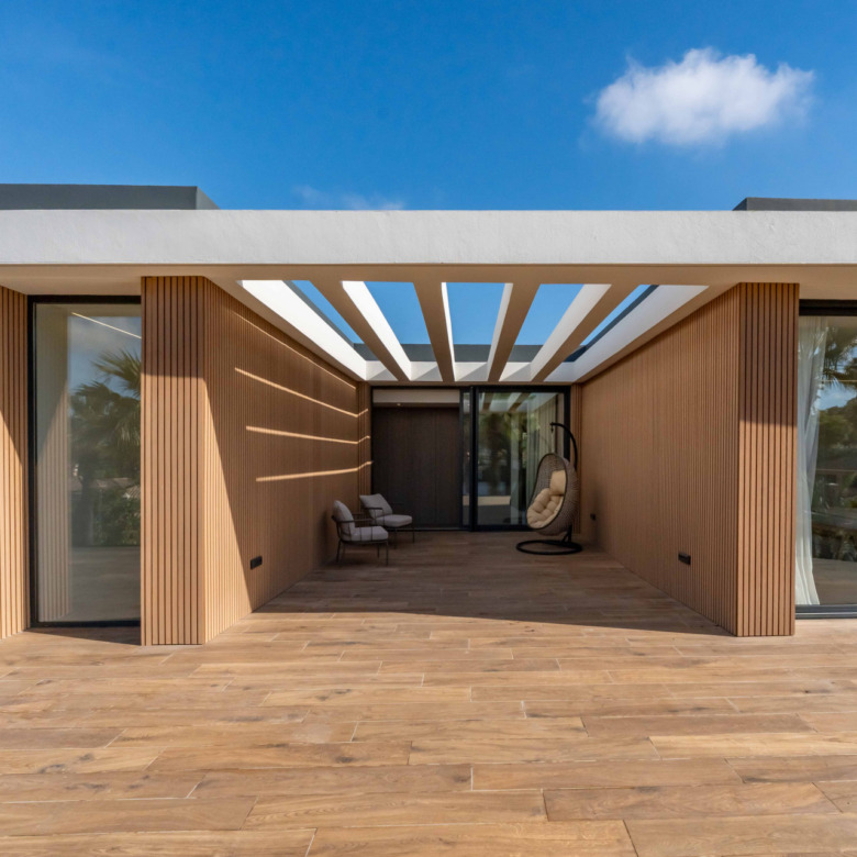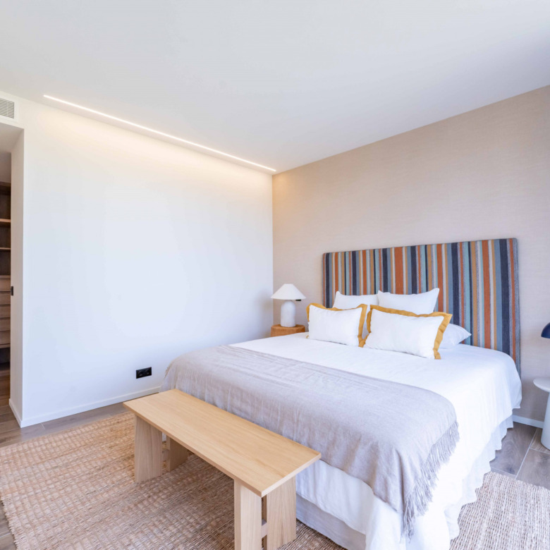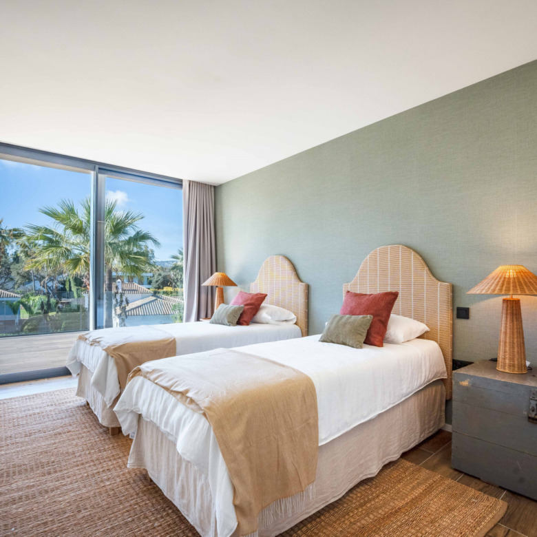 La villa cuenta con cuatro amplios dormitorios, cada uno con su propio baño privado, garantizando la máxima comodidad y privacidad. El diseño contemporáneo y los acabados de alta calidad crean una atmósfera lujosa pero acogedora en toda la propiedad. La cocina americana de planta abierta está totalmente equipada con electrodomésticos modernos, lo que la convierte en un placer cocinar y entretener.