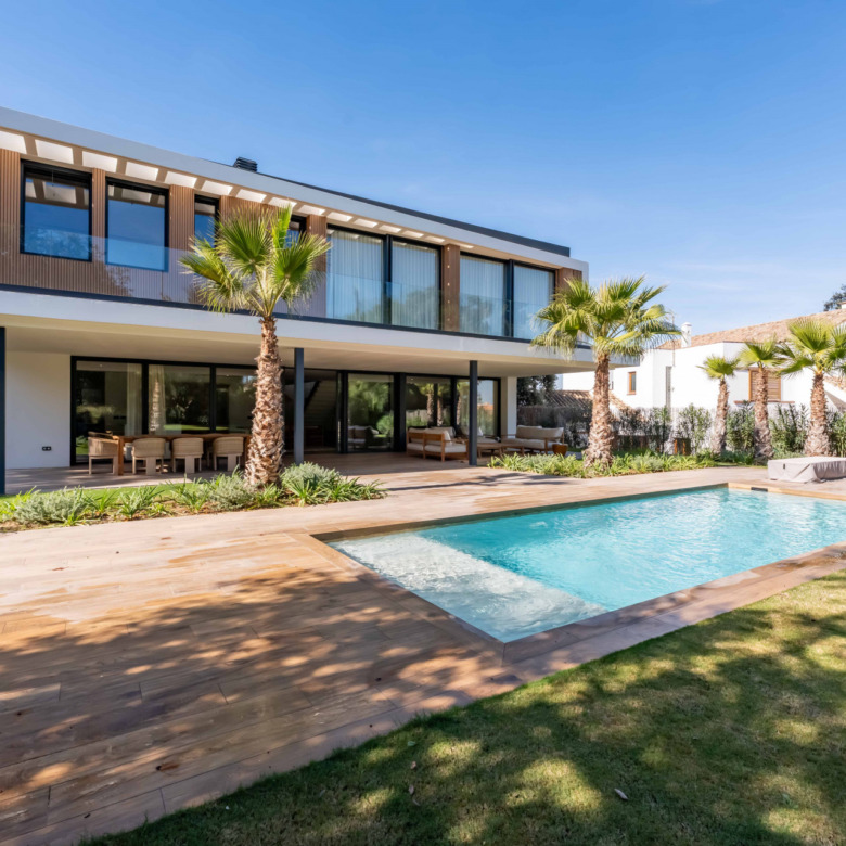Bienvenido a esta impresionante villa ubicada en la prestigiosa Zona B de Sotogrande Costa, Cádiz. Esta moderna propiedad, diseñada por el renombrado arquitecto Max Lago, ofrece una perfecta combinación de elegancia y funcionalidad. Con su hermoso jardín tropical, esta villa brinda un ambiente tranquilo y sereno, siendo una elección ideal para familias que buscan un refugio pacífico.
